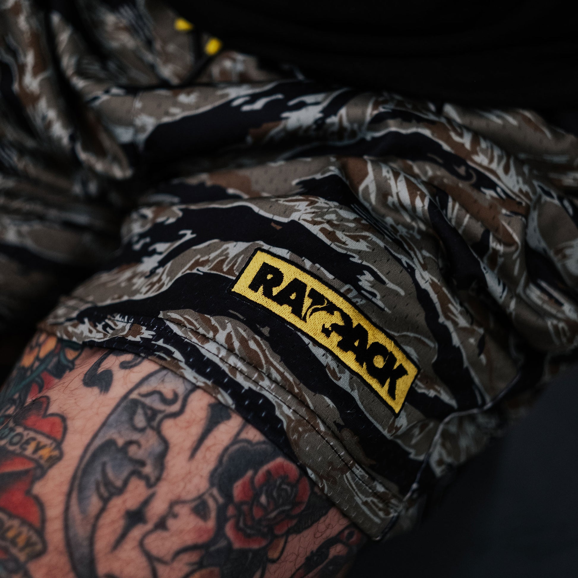 Tiger camo w/ rats sublimated on mesh shorts